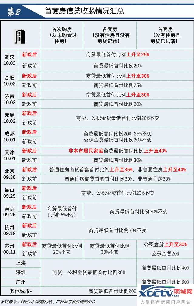 进一步完善差别化住房信贷政策。对购房人家庭名下在本市无房且无商业性住房贷款记录或公积金住房贷款记录的,继续执行贷款首付款比例最低30%的政策;购房人家庭名下在本市无房但有商业性住房贷款记录或公积金住房贷款记录的,贷款首付款比例不低于50%;购房人家庭名下在本市拥有1套住房的,贷款首付款比例不低于70%。