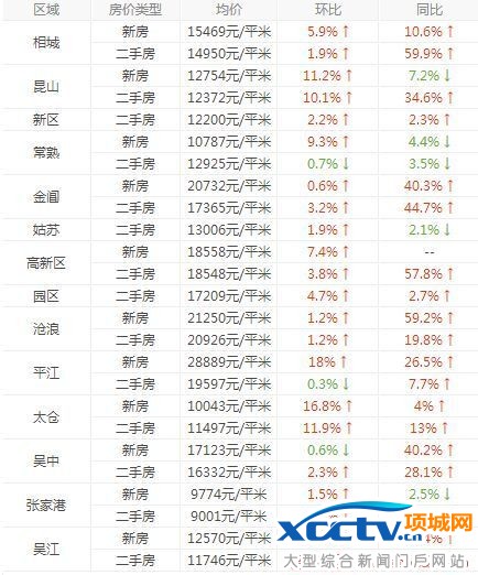 苏州各地区的房价几乎也全线上涨,个别地区开始出现下跌,下跌幅度都很小,都在1%以内,上涨地区占大多数,涨幅相对比较集中在5%到10%之间,只有个别地区的房价涨幅超过了10%,总体来看房价环比涨幅稍微有所上涨;同比2015年的房价来看,苏州八成以上的房价处于上涨状态,涨幅超40%的地区很多,最高涨幅达59.9%,下跌地区很少,跌幅最高也只有12.6%,相比合肥等其他热点城市,苏州的房价相对来说还算比较正常。