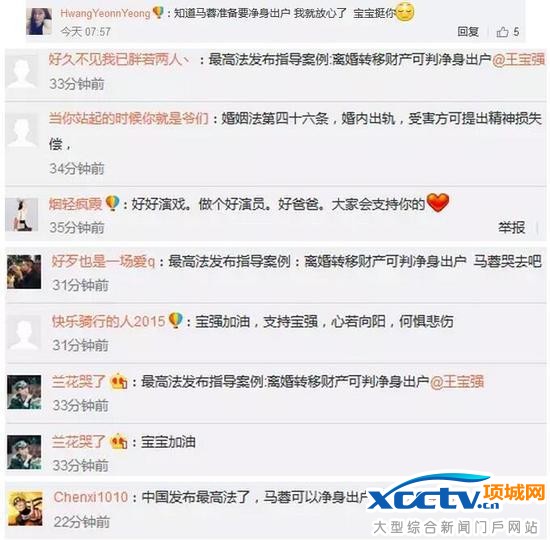 王宝强更是被曝借钱交诉讼费。听说最高法发布了这个指导案例,王宝强的粉丝赶紧跑到他的微博下报喜:“马蓉可净身出户了!”