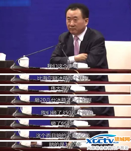 因经营问题为了保障业主利益,赔了10个亿才实现回购,王健林说:我们比海尔伟大多了,砸冰箱才几个钱,我们砸了350几个商铺,砸了6亿多,赔了10亿多……