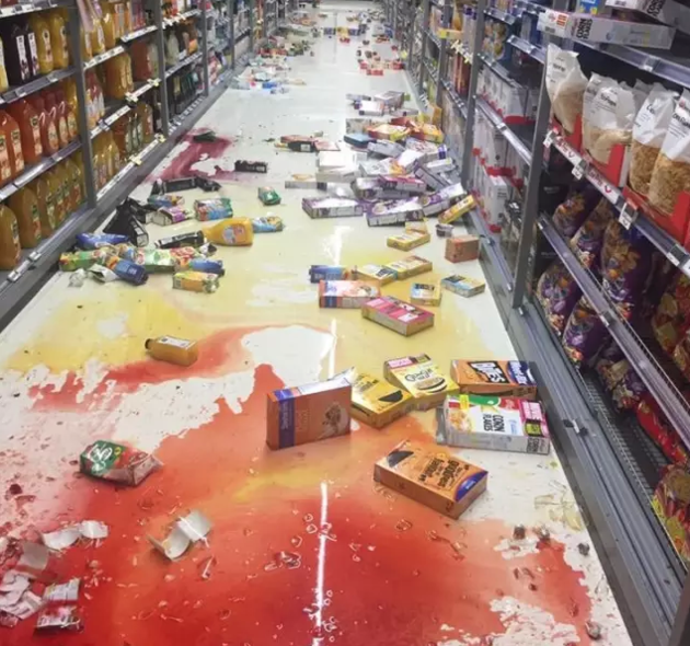 地震发生后,当地网友纷纷在社交媒体上晒出了受灾情况。比较典型的情况是,超市一片狼藉。