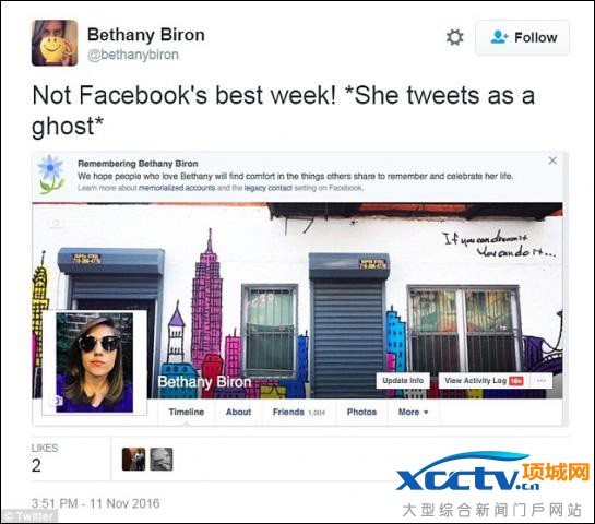 “所以脸书是错误地通知人们用户都死了,包括我......”