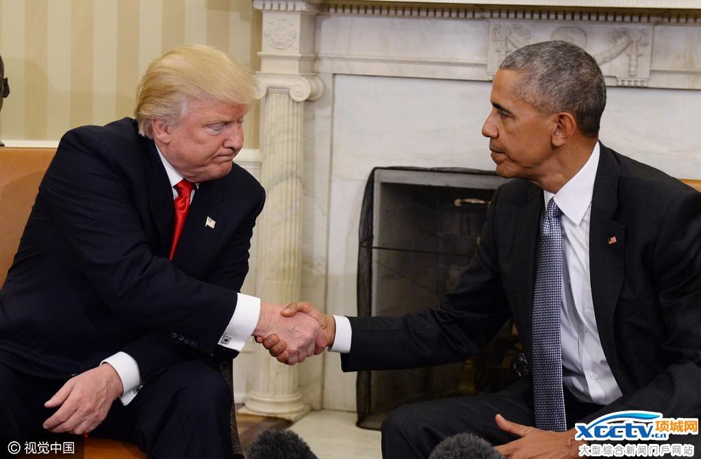 美国总统奥巴马在白宫椭圆形办公室会见总统当选人特朗普,双方一改选举时的针锋相对,奥巴马帮特朗普解围挡驾媒体,特朗普盛赞奥巴马是“非常好的人”。