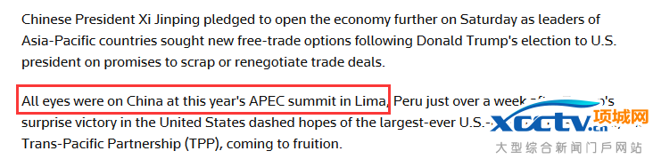 路透社称,特朗普当选美国总统打破了史上最大贸易协定TPP诞生的希望。一周之后,在秘鲁利马举行的APEC峰会上,所有眼睛都盯着中国。