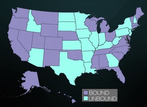 紫色为选举人绑定州,蓝色为非绑定州。来源:网络