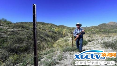图为一个美国农民吉姆·奇尔顿在看守着他的土地。他有一个20万平方米的农场,位于亚利桑那州东南部。农场和墨西哥之间只有一道铁丝网。奇尔顿觉得自己有责任保护这里的安全,因此经常把滑膛枪带在身边。