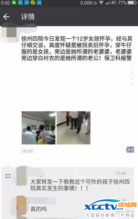 事件回顾:10月04日11时许,江苏奎山派出所接群众报警,称在徐州市中心医院,有名12岁小女孩在一名40余岁男子陪同下做产前检查,怀疑该女孩系被拐卖。