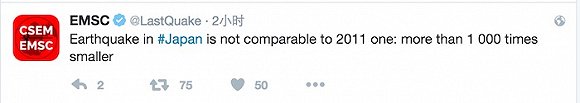 根据巴黎的地震消息实时警告科研组织EMSC发布推文称,这次地震规模无法与2011年相提并论,“要比后者小1000倍”。日本广播协会消息称,福岛核电站目没有受到地震或海啸影响。