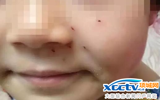 当天晚上7点多回到家的王女士,进门就看到了不正常的女儿,“左脸红肿着,仔细看还有洞。”王女士细数了下,笑笑左脸有6处细小的洞,还有2处没那么深,只是有印迹。
