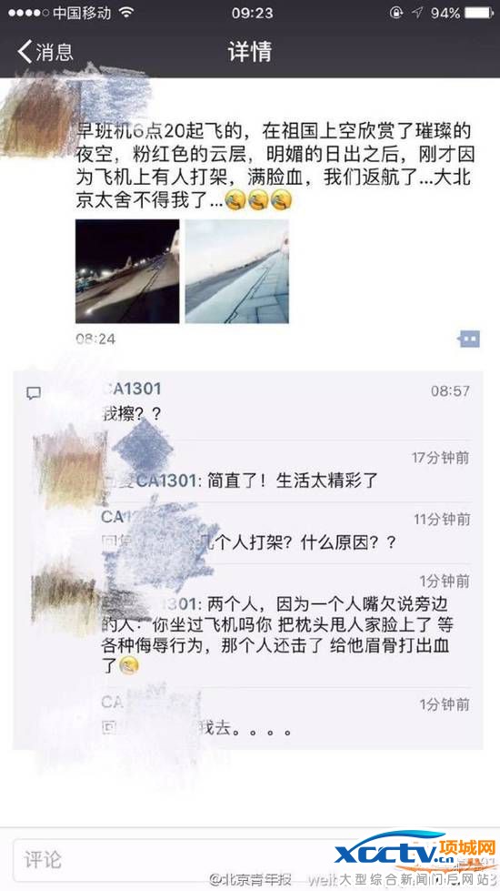 6、北京飞海口航班两乘客打架,起飞1小时后被迫返航。