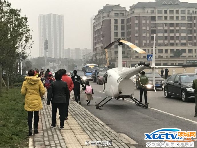 12月19日,据《重庆晨报》,19日上午,几张来自沙坪坝区大学城树人小学的照片引起不少网友关注。在这些照片中,一架直升机停在行车道边,还有身着绿色制服的人守着,吸引了不少小学生驻足观看。有网友称,该直升机是学生家长开来专门接送学生上下课的。