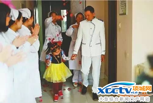 【导语】:14日上午,泰安一位6岁的女孩“出嫁”了!在飘散的花瓣中,小海青和爸爸手拉着手,走进了“婚礼殿堂”。这件事一眼看上去实在不可思议,但背后的故事却令人心酸。