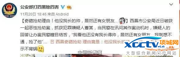 男子抢劫理由:“他没我帅,居然还有女朋友!”