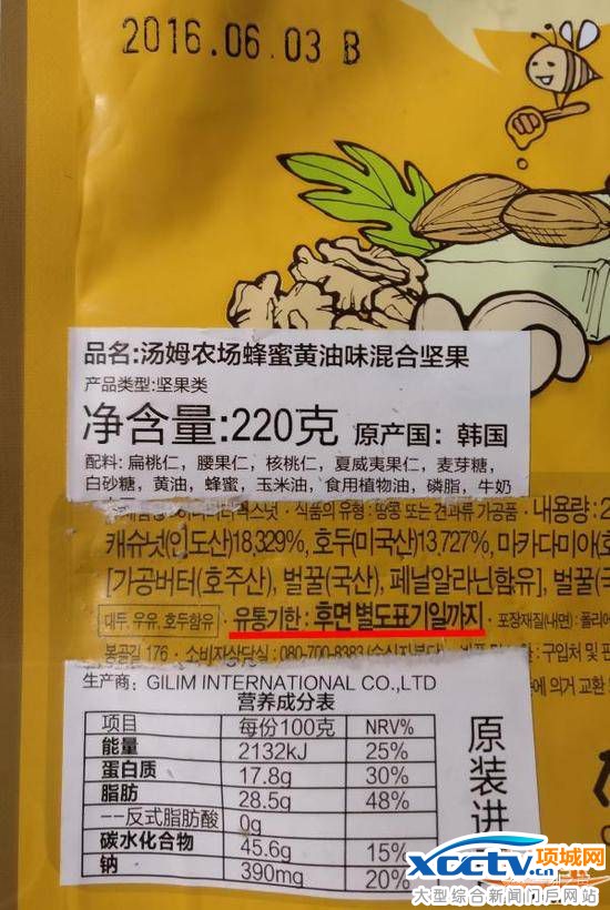 4、网店售卖韩国坚果,韩文标签写“过期”中文写“没有”。