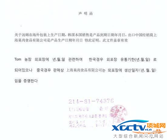 他们向韩国厂商核实了情况。该厂商证实了国内经销商说法属实,并出具了说明函。