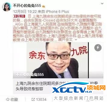 近日,网友@不开心的兔兔555在微博发表多篇长文,通过图文形式,非常详细地介绍了事情经过。其自称是一位19岁的女孩,因为对自己脸型不满意,一直在攒钱手术,并通过网络查找到上海九院余东医生。但在其就医住院过程中被性侵三次,且“脸部毁容”。