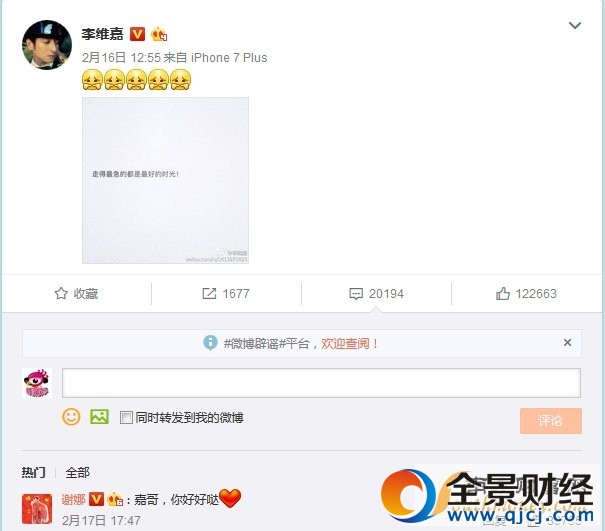 李维嘉发伤心感慨。近日李维嘉看上去瘦了很多,不过他在录制《歌手》的时候向观众表示自己很好。昨日又曝出李维嘉录制某综艺节目到中途,他几度哽咽大哭,导致录制中断,吴映洁暖心安慰。其实在日前李维嘉在微博中发感慨称:“走的最急的都是最美好的时光。”并配上了想哭的表情。谢娜忙在微博留言下安慰称:“嘉爷,你要好好的。”李维嘉与吴昕挑大梁主持《爱in思谈》现场大哭。