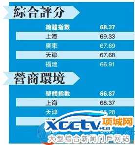 分区域来看,上海自贸区的评分最高(69.33),而福建最低(66.91),广东(67.69)与天津(67.68)较为接近。上海财经大学上海发展研究院副院长江若尘分析称,该结果表明上海的先试先行的效果凸显,但她同时指出,由于各个自贸区所承担的战略任务的不同,随着另外3个自贸区的发展,未来的评价可能会发生变化。
