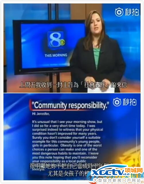 哔宝不禁想起之前看过的一则真实的新闻,美国一位女主播也是同样收到了观众在facebook上的投诉,直指她不能控制住体重,没有把自己当成年轻人尤其是年轻女性的模范,没有承担相应的社会责任。