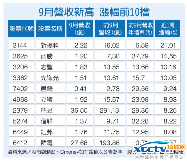 部分公司已于上周先行公布九月营收