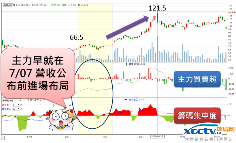 从 6/08 收 66.5 元到 8/12 的高点 121.5 元