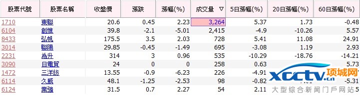 选择 7/11 成交量最高的双鸿