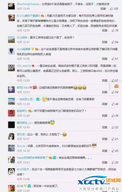 虽然每个人都有各自的答案,但“8550元”这个数值还是让众人大吃一惊。“离安全还差一截。”“安全一半了。”“极度恐惧中……”。安全感都去哪儿了?且看北京众网友的吐槽!(点击图片可放大)