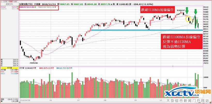 当跌破 100 MA,代表长线走势偏空!