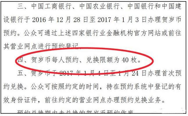 比如这次鸡年贺岁纪念币,央行公告的附件三的第四条赫然写着:“贺岁币每人预约、兑换限额为40枚。”纳尼?!40枚!这不就是一卷吗?