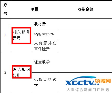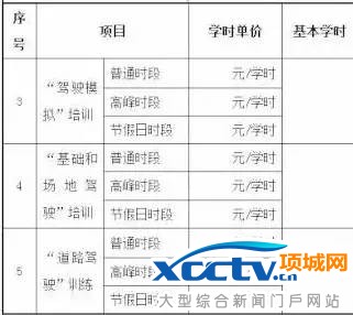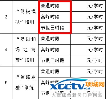 《机动车驾驶培训费用构成明细表》部分内容。