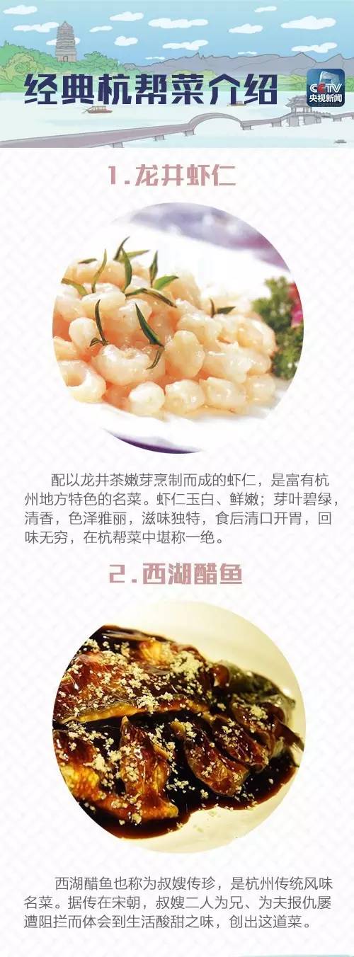 这些菜点大多是杭州历史名菜,但又融入了一些新的烹调技巧,显得更有时代气息。大厨们说,他们已经做好了准备,要让外国朋友忘不掉杭州的美好滋味。这些经典的杭帮菜都有啥呢?