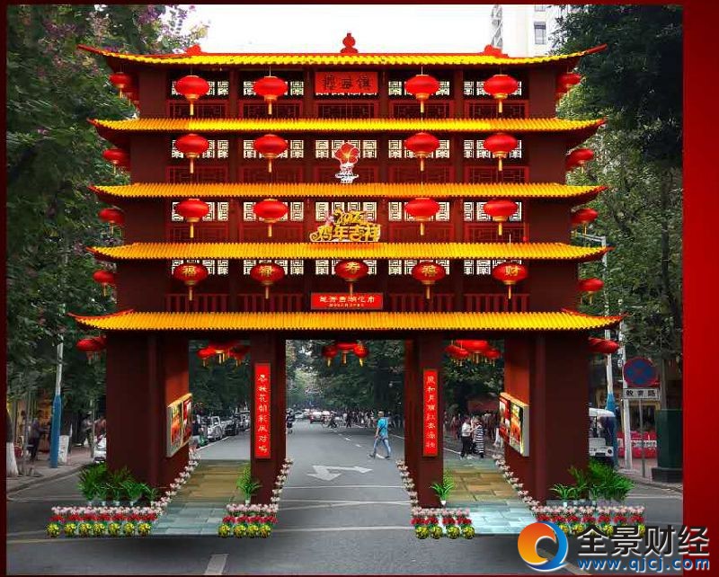 2017广州越秀西湖花市25日开放 主牌楼设计以镇海楼为原型
