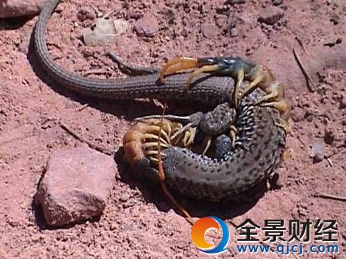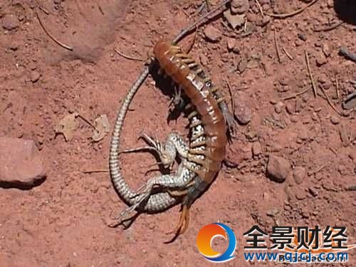 这只不幸的蜥蜴遇到了强大的对手,此蜈蚣并不是同类中个头最大的,体型最大的蜈蚣甚至超过少年小臂。