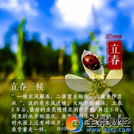 立春期间,气温、日照、降雨,开始趋于上升、增多。但从气候学上来说,立春只是春天的前奏。我国东北、西北地区清明入春,华北地区春分入春,长江中下游惊蛰入春,西南地区雨水入春,只有华南地区立春节气可作为春的开始。