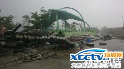 三和海滨公园破堤,胶筏冲毁。刘人玮摄