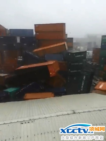 网友拍到货柜犹如积木般掉落。翻摄画面
