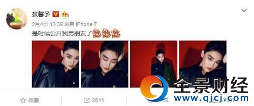 张馨予晒照称是时候公开男朋友了 真相是这样