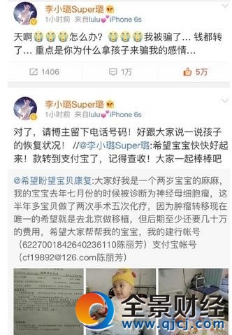 2016年3月26日,李小璐在微博发文疑似遭遇网络诈骗,有网友称自己宝宝患病,并借此骗取李小璐等网友的爱心善款,随后杳无音讯。记者就此事联系了李小璐经纪人,对方表示“没事了,都过去了。”