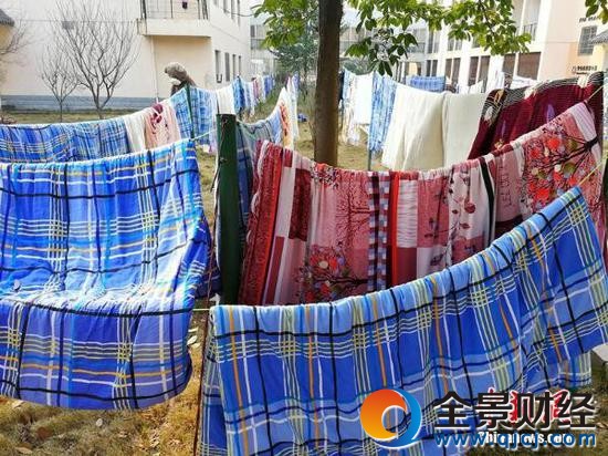 图文:开学季大学生集体晒被子 场面壮观