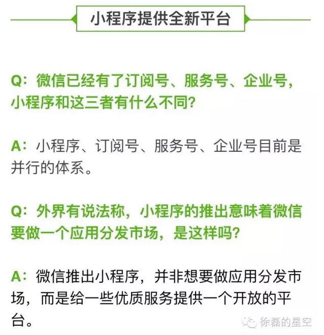 昨天微信发布了之前酝酿很久得微信订阅号,不过好像改名了叫做“小程序”,说是小程序其实就是一个网页版得APP也是微信增强了对与H5的适应性。那么微信的“小程序”会给APP带来什么影响?还是会给更多的创业者一个廉价的开发平台?