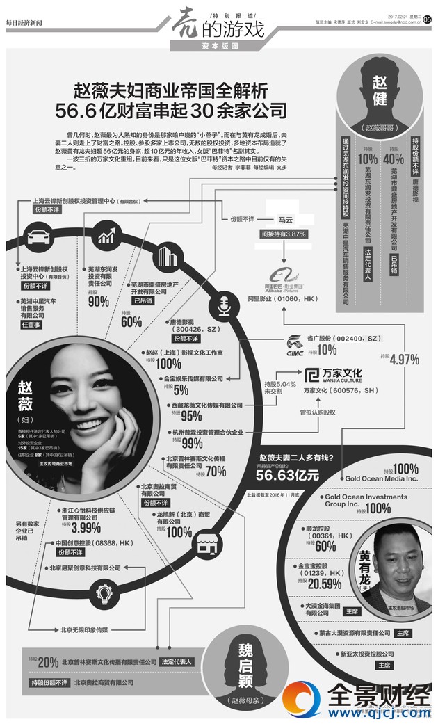 赵薇夫妇商业帝国全解析 56.6亿财富串起30余家公司