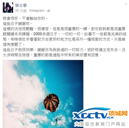 梁士华也在脸书发表分手宣言。翻摄梁士华脸书