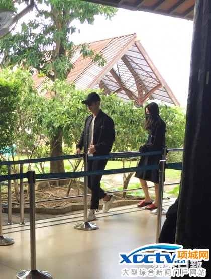 黄晓明(左)与Baby一前一后现身泰国苏美岛机场。香港《苹果日报》读者提供