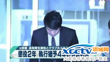 高知东生离开法庭时主动鞠躬道歉。翻摄电视画面