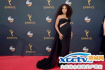 凯莉华盛顿穿黑色挖洞洋装走红毯,身怀六甲仍不失性感。