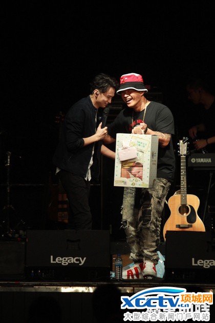 台语金曲歌王陈建玮今在Legacy举办「陈建玮与原创新声,喜欢音乐接力赛」演唱会,邀来饶舌歌手大支担任嘉宾,大支特别準备尿布礼盒祝陈建玮老婆12月将出世的女儿顺产,还要陈建玮现场拆开,陈建玮问:「你送男生还女生的?」,大支笑亏:「又不是送你的,是给妳女儿的。」2人合唱《Would you be my girl》掀起高潮,大支唱完意犹未尽,已经发过3张个人专辑的他,虽中英文歌曲皆有涉略,唯独台语没有尝试过,直呼:「台语很有意思,下一张想试试看!」喜欢台语饶舌的乐迷又多了个新选择。陈建玮老婆蔓蔓(黄舒蔓)也爱相随,顶着6月大肚一早就跟着彩排,陈建玮在台上卖力开唱,她在台下也听得如癡如醉。(蒋铃铃/台北报导)
