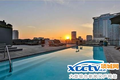 强哥位于洛杉矶市区的顶楼豪宅有一座长方形泳池。翻摄《纽约日报》