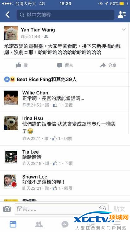 炎亚纶在私上脸书上再摃上三立。读者提供