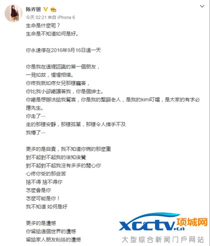中国男星乔任梁上周在上海住处身亡,相识7年的挚友陈乔恩事发以来从未表态,一度被网友骂到臭头,昨晚她在微博首度发文,放上2人相拥的合照,称自己已经收到乔任梁送给她的明年生日礼物,写下:「常常回来看我好吗,因为我会很想念你。」逼哭双方粉丝。昨陈乔恩现身机场及乔任梁追思会,均戴墨镜不发一语,直到追思会结束后,她哭到整张脸胀红、被人搀扶走出来,才洩漏她整个人逼近崩溃的情绪,「陈乔恩哭了」甚至佔据微博热搜一位。今凌晨陈乔恩在微博发长文思念好友:「你是我在这里认识的第一个朋友,一见如故,惺惺相惜。你疼我就如疼女儿那样宠着,你比我小却总让着我,你是个绅士。你总是想办法给我惊喜,你是我的圣诞老人,是我的kimi叮噹,是大家的有求必应先生。」但她却万万没想到乔任梁走的那幺突然、那幺安静,更自责不知道好友的病情,心痛说出:「捨不得、捨不得你,怎幺会是你,怎幺可能是你!我不知道如何是好。」从来没想过与好友的重逢竟是道别。在告别式上最后的三鞠躬,她看了好友最后一眼后,轻声说出再见,从此向好友诀别。更惊讶的是,乔任梁到最后也都没放下陈乔恩,甚至已经準备好她明年的生日礼物,让陈乔恩既感动又心疼,「今天小妈把你早给我买好的,明年的生日礼物亲手给我了,我想哭,谢谢你 Kimi。常常回来看我好吗,因为我会很想念你」。粉丝看到礼物这段纷纷爆哭,「看到最后我哭了,Kimi还记得把明年礼物为乔恩準备好」、「他真的很爱你,然而他却再也不能亲手给你礼物」、「看到后面,憋不住自己的眼泪了」。(陈明慧/综合报导)