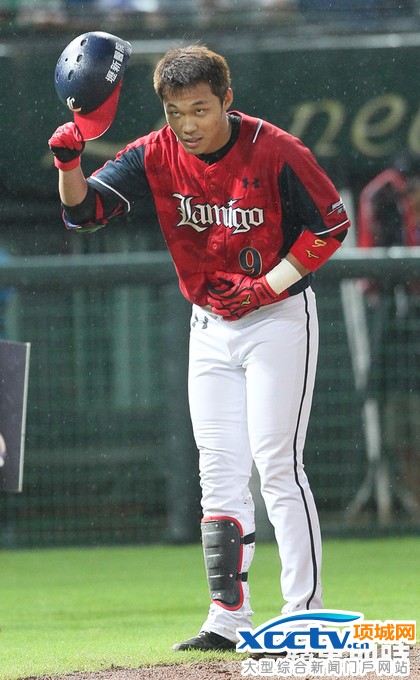 王柏融开轰完成200安,脱帽向观众致意。游智胜摄